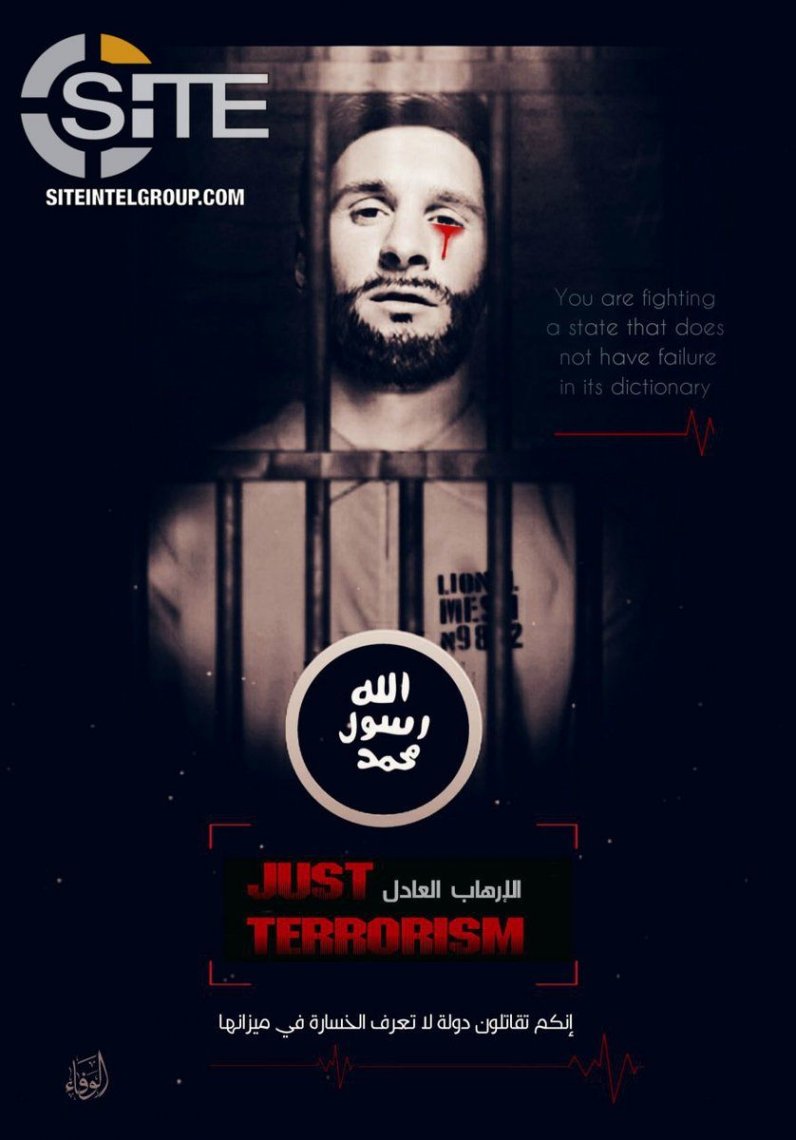 Pro-#ISIS media unit Wafa' Foundation continues to threaten 2018 FIFA #WorldCup, this time using an image of #LionelMessi in a prison outfit pic.twitter.com/isB8RDKYAK