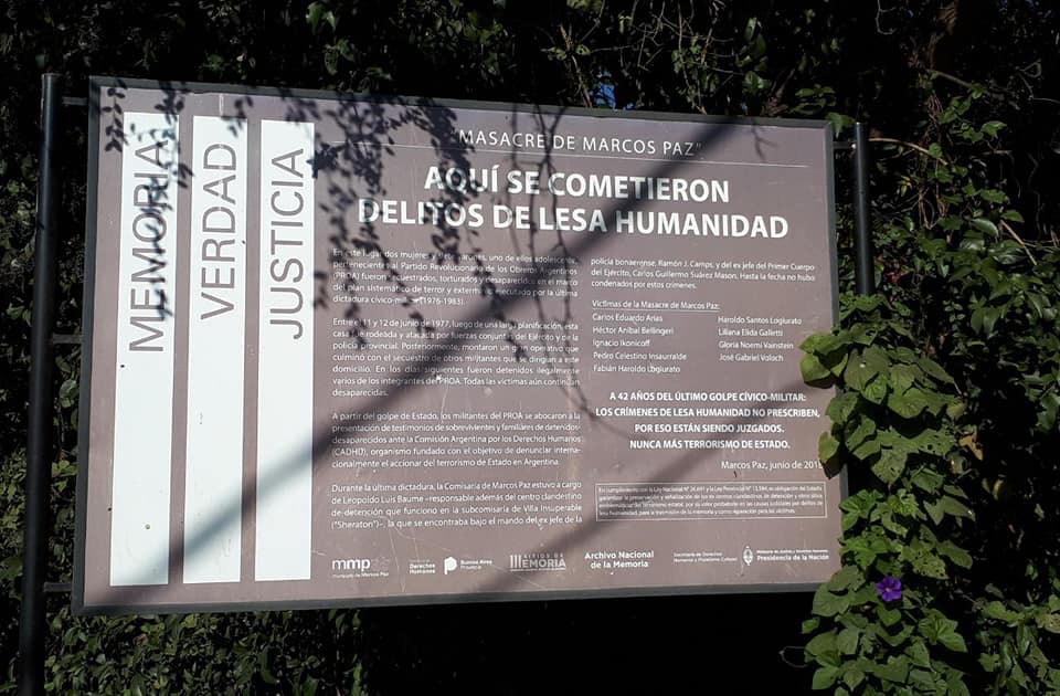 Además, se indicó que en ese lugar «se recopilaron importantes testimonios de víctimas de la represión, se empezó a develar el método del Estado terrorista: detenidos que luego no aparecían presos en ningún lugar o aparecían muertos; asesinatos fraguados como enfrentamientos; plan sistemático contra los militantes populares y sus familias».